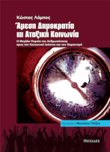 »Σε όλη αυτήν την προσπάθεια, που άρχισε με τις μεταρρυθμίσεις του Θησέα, το πρόσωπο που ενώνει την αρχαϊκή με την αρχαία εποχή, όπου για πρώτη φορά οργανώθηκε πολιτικά κοινωνία, και συνεχίστηκε με μια σειρά από φωτισμένους νομοθέτες και κυβερνήτες μέχρι τον “χρυσό αιώνα” και την “εποχή του Περικλή”, η Άμεση Αθηναϊκή Δημοκρατίαδέχτηκε δυο πολύ σοβαρά πλήγματα. Το πρώτο ήταν η για πρώτη φορά στην ιστορία της ανθρωπότητας θέσπιση από τον Σόλωνα, του δικαιώματος της “δίκαιης ανισότητας”, της ατομικής ιδιοκτησίας, πάνω στην, μέχρι τότε δημοτική και εκ περιτροπής καλλιεργούμενη με την μέθοδο του αναδασμού, γη, όπως ονόμασε τις μεταρρυθμίσεις του ο ίδιος, που οδήγησε στην διάσπαση της παραγωγικής βάσης της κοινωνίας, κατά συνέπεια και της ίδιας της κοινωνίας σε καταστροφικά αντικρουόμενες τάξεις. Και το δεύτερο ήταν πως κύρια ο Πλάτωνας και για διαφορετικούς λόγους ο Αριστοτέλης, κατασυκοφάντησαν την Αθηναϊκή Δημοκρατία υπέρ της αριστοκρατικής ολιγαρχίας ό ένας και της μοναρχίας άλλος, μέχρι που τελικά κατέρρευσε και εξαιτίας των δικών της αντιθέσεων και αντιφάσεων, όπως αυτές που μόλις αναφέρατε».